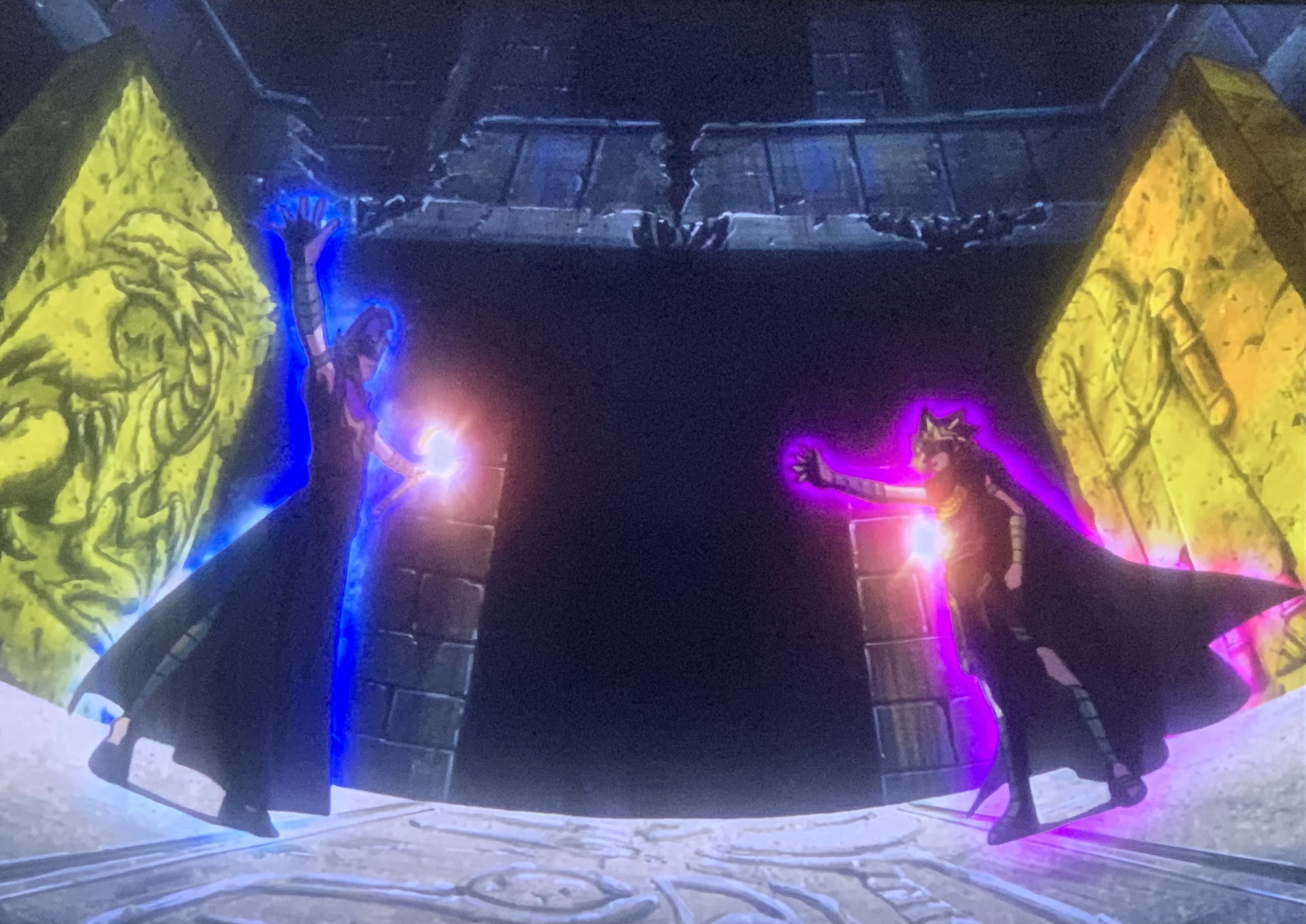 Der Kampf Seto gegen Atem in einer anderen Darstellung (gezeigt durch Yami Mariks Millenniumsstag)