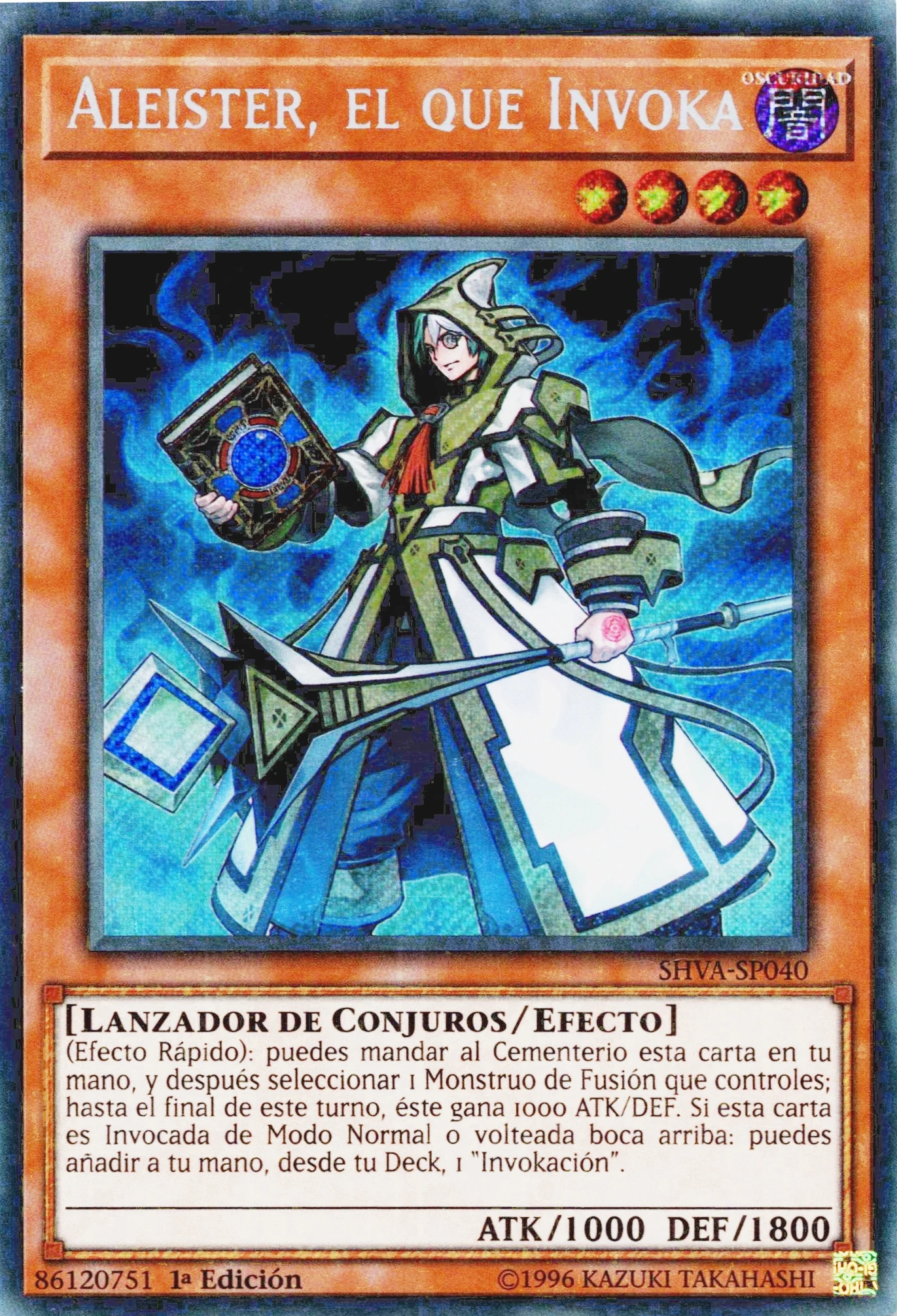 - SHVA/MAGO: (Efecto Rápido): puedes mandar al Cementerio esta carta en tu mano, y después seleccionar 1 Monstruo de Fusión que controles; hasta el final de este turno, éste gana 1000 ATK/DEF. Si esta carta es Invocada de Modo Normal o volteada boca arriba: puedes añadir a tu mano, desde tu Deck, 1 "Invokación".
