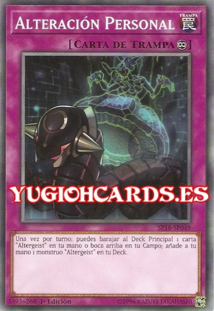 - La ilustración de "Alteración Personal" muestra la silueta del monstruo "Altergeist Titiritero" y varios de los tentáculos con forma de serpiente del monstruo "Altergeist Primebanshee".
