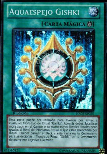 - HA05: Esta carta puede ser utilizada para Invocar por Ritual a cualquier Monstruo de Ritual "Gishki". Además debes Sacrificar monstruos en el Campo o tu mano cuyos Niveles totales sean iguales al Nivel del Monstruo Ritual al que estás Invocando por Ritual. Puedes barajar al Deck a esta carta en tu Cementerio para seleccionar 1 Monstruo Ritual "Gishki" en tu Cementerio; devuelve ese objetivo a la mano.