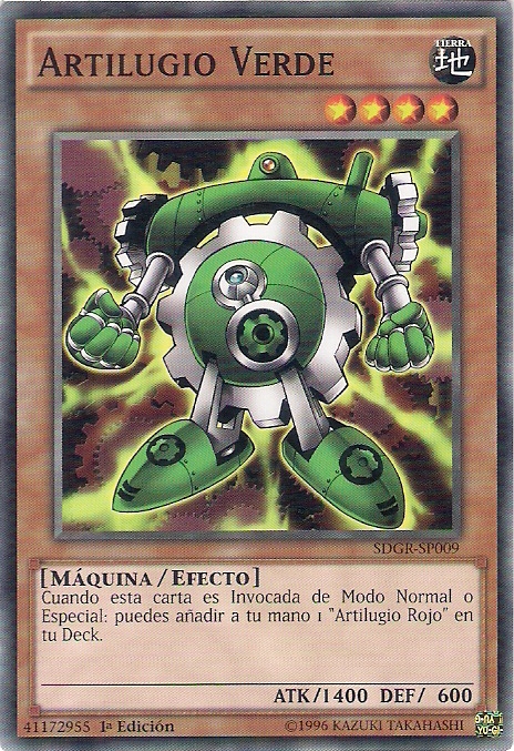 - "Artilugio Verde" es el miembro de los tres monstruos "Artilugio" originales más fuerte en cuestión de ATK, pero es el más débil en lo que se refiere a DEF.