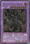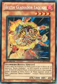 - TU05: Si esta carta fue Invocada de Modo Especial por el efecto de un monstruo "Bestia Gladiador", su ATK original se convierte en 2100. Al final de la Battle Phase, si esta carta atacó o fue atacada, puedes devolverla al Deck para Invocar de Modo Especial 1 monstruo "Bestia Gladiador" de tu Deck, excepto "Bestia Gladiador Laquari".