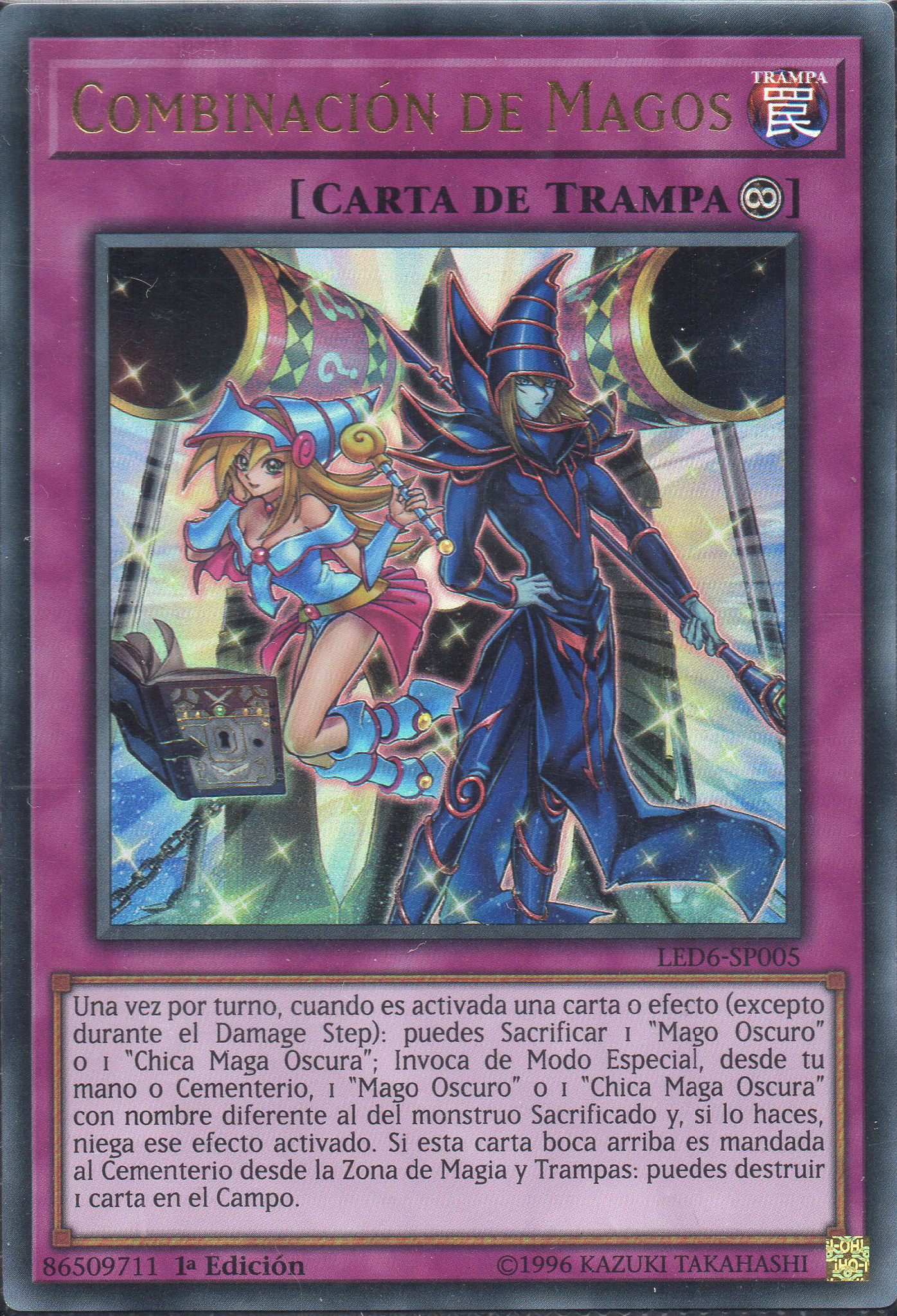- LEDD/SS01/EVSD/LED6/STP1/LART: Gana 300 ATK por cada "Mago Oscuro" o "Mago del Caos Negro" en el Cementerio.