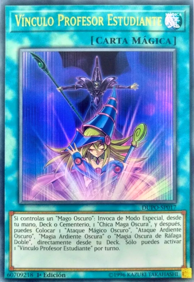 - DPYG/YSYR/PGLD/DL18/MVP1/LDK2/SDMY: Esta carta gana 300 ATK por cada "Mago Oscuro" o "Mago del Caos Negro" en el Cementerio de cualquier jugador.
