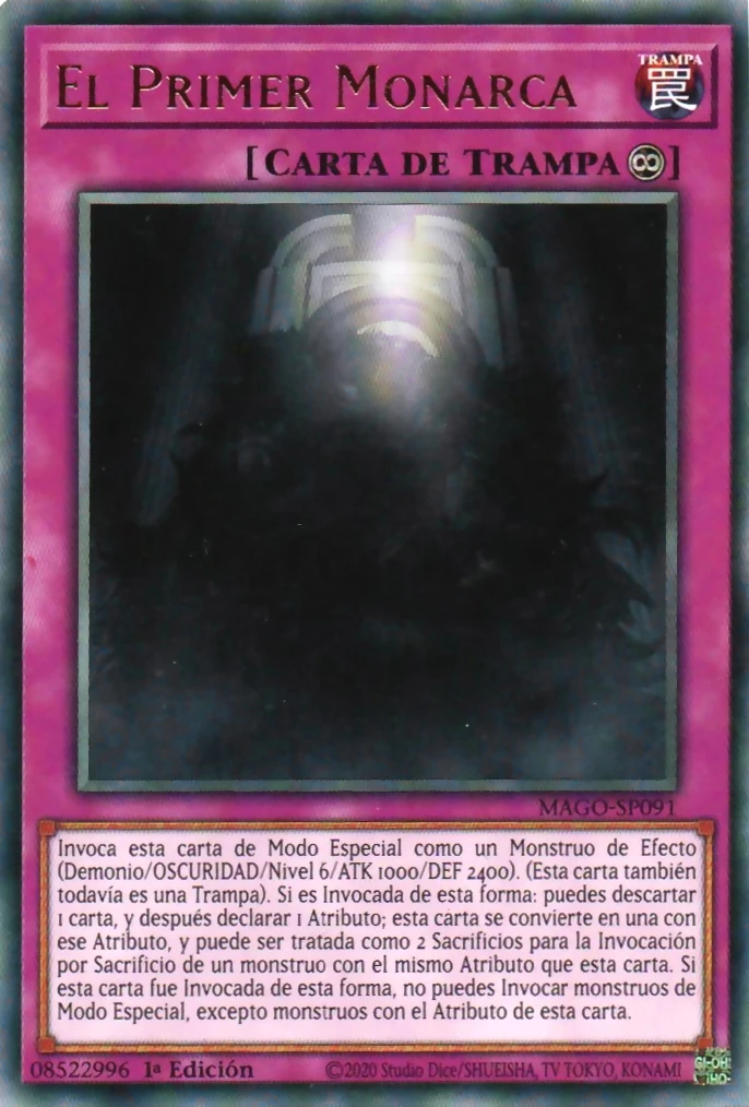 - "El Primer Monarca" es el primer Monstruo Trampa cuyo efecto puede cambiar su Atributo.