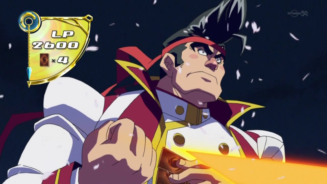 Sin embargo, Gong usó el efecto de "Samurai Superpesado Dios de la Guerra Fudomyo'o" para Invocarlo de Modo Especial desde su mano, Sacrificando a "Espadachín". A continuación, usó el segundo efecto de "Fudomyo'o" para protegerse y a "Cicaluz" de la destrucción y terminar la Battle Phase. Gong se sorprendió cuando Jack usó monstruos en su mano para Invocar por Sincronía y usó el segundo efecto de "Fudomyo'o" para evitar que "Cicaluz" y "Tirano" fuesen destruidos. Le dijo a Jack que contaba con él para traer el corazón de Yuya de vuelta con los dragones de su alma. Sin embargo, Gong fue derrotado por el efecto de "Ala Transparente" y salió volando. Sylvio comprobó su estado y le contó cómo Yuya estaba tratando de regresar después de reaccionar al Duelo de Entretenimiento. Le dio su Disco de Duelo y el colgante de Yuya a Sylvio y se sorprendió al ver a Cuervo liberado de su carta.