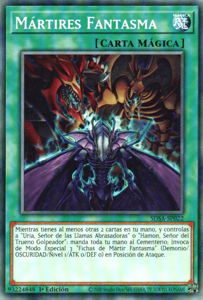 - DUSA: No puede ser Invocado de Modo Normal/Colocado. Debe ser Invocado de Modo Especial (desde tu mano) mandando al Cementerio 3 Cartas Mágicas Continuas boca arriba que controles, y no puede ser Invocado de Modo Especial de otras formas. Si esta carta destruye un monstruo de tu adversario en batalla y lo manda al Cementerio: inflige 1000 puntos de daño a tu adversario. Mientras esta carta esté en Posición de Defensa boca arriba, los monstruos de tu adversario no pueden seleccionar monstruos para ataques, excepto a éste.