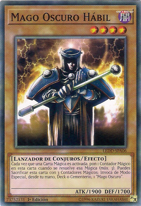 - LEDD/SBC1: Cada vez que una Carta Mágica es activada, pon 1 Contador Mágico en esta carta cuando se resuelve esa Mágica (máx. 3). Puedes Sacrificar esta carta con 3 Contadores Mágicos; Invoca de Modo Especial, desde tu mano, Deck o Cementerio, 1 "Mago Oscuro".