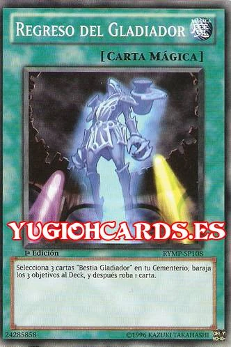 - Si una de las tres cartas "Bestia Gladiador" seleccionadas cuando activaste "Regreso del Gladiador" deja tu Cementerio antes de que se resuelva, las restantes no serán barajadas al Deck y tampoco robarás una carta.