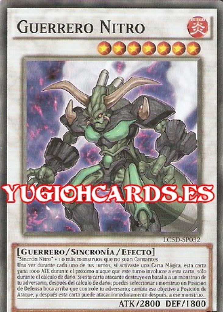 - TDGS/DP08: Si esta carta es mandada al Cementerio para la Invocación por Sincronía de un monstruo "Nitro" de Tipo Sincronía, roba 1 carta.