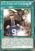 - CROS: Invoca de Modo Especial, desde tu Deck, 1 monstruo "U.A.", pero sus efectos son negados, y además tampoco puede ser usado como Material de Sincronía o Xyz para una Invocación, y después, tú pierdes LP iguales al Nivel del monstruo que Invocaste de Modo Especial por este efecto x 300. Sólo puedes activar 1 "U.A. Firma del Contrato" por turno.