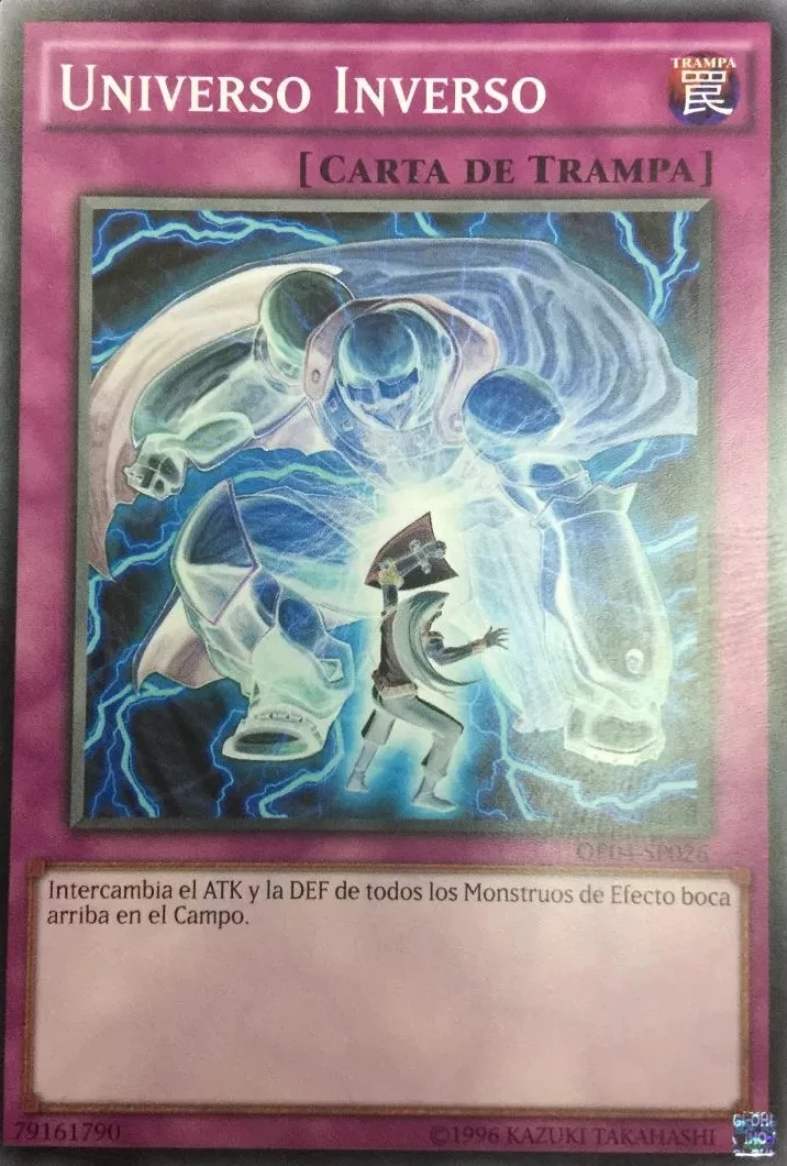 - El efecto de "Universo Inverso" es similar al de las cartas "Escudo y Espada" y "Ataque de Escudo". En este caso, solo afecta a Monstruos de Efecto.