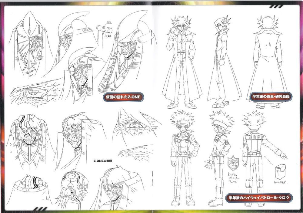 El casco de Z-ona no solo posee un diseño casi exacto al casco de Yusei (incluyendo el cristal amarillo en la parte central), sino que también tiene los colores opuestos (blanco en lugar de rojo). Su diseño humano también comparte similitudes con el diseño de la chaqueta de Yusei, por ejemplo, los dos cristales en cada lado de su cuello. Un hecho notable es que cuando él estaba al revés, en su forma de coma, se apareció para ayudar a Yusei y sus acompañantes. Él salvó a Yusei, Bruno y Sherry LeBlanc de una explosión en el Sector de Seguridad. También le entregó a Yusei su "Dragón de la Estrella Fugaz" para derrotar a Primo. Desde entonces, se ha demostrado en su posición boca arriba, conspirando para borrar la ciudad de Nueva Domino y matar a los salvadores, junto con Aporia y Sherry. Z-ona tiene lo que parecen ser unas cartas de Duelo de Monstruos en los contenedores azules que se encuentran en su cuerpo de máquina. Se desconoce hasta el momento lo que estas cartas son o si cumplen alguna función para Z-ona.