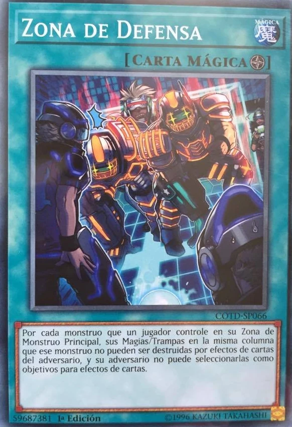 - COTD: Por cada monstruo que un jugador controle en su Zona de Monstruo Principal, sus Magias/Trampas en la misma columna que ese monstruo no pueden ser destruidas por efectos de cartas del adversario, y su adversario no puede seleccionarlas como objetivos para efectos de cartas.