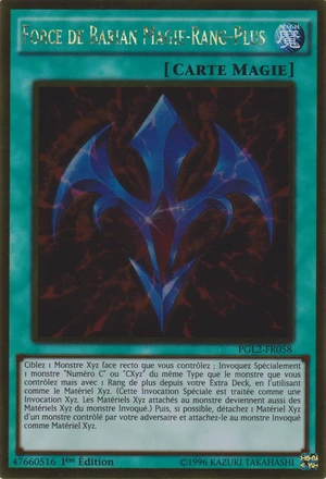 | Ciblez 1 Monstre Xyz face recto que vous contrôlez ; Invoquez Spécialement 1 monstre "Numéro C" ou "CXyz" du même Type que le monstre que vous contrôlez mais avec 1 Rang de plus depuis votre Extra Deck, en l'utilisant comme le Matériel Xyz. (Cette Invocation Spéciale est traitée comme une Invocation Xyz. Les Matériels Xyz attachés au monstre deviennent aussi des Matériels Xyz du monstre Invoqué.) Puis, si possible, détachez 1 Matériel Xyz d'un monstre contrôlé par votre adversaire et attachez-le au monstre Invoqué comme Matériel Xyz.