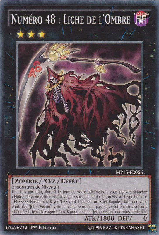 2 monstres de Niveau 3 Une fois par tour, durant le tour de votre adversaire : vous pouvez détacher 1 Matériel Xyz de cette carte ; Invoquez Spécialement 1 "Jeton Vision" (Type Démon/TÉNÈBRES/Niveau 1/ATK 500/DEF 500). (Ceci est un Effet Rapide.) Tant que vous contrôlez "Jeton Vision", votre adversaire ne peut pas cibler cette carte avec une attaque. Cette carte gagne 500 ATK pour chaque "Jeton Vision" que vous contrôlez.