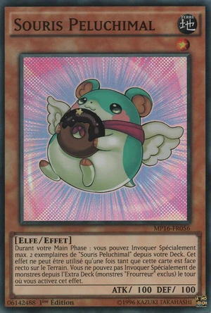 Durant votre Main Phase : vous pouvez Invoquer Spécialement max. 2 exemplaires de "Souris Peluchimal" depuis votre Deck. Cet effet ne peut être utilisé qu'une fois tant que cette carte est face recto sur le Terrain. Vous ne pouvez pas Invoquer Spécialement de monstres depuis l'Extra Deck (monstres "Frourreur" exclus) le tour où vous activez cet effet.