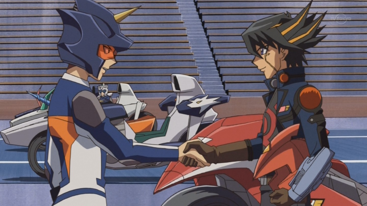 A la suite de la défaite de Z-one, Lazar devient le maire de la ville. Yusei est devenu un scientifique qui supervise la réalisation du nouveau processeur central, pour assurer la sécurité de la ville, Crow est devenu un patrouilleur routier et reçoit des invitations de ligues étrangères, Akiza compte étudier à l'étranger pour devenir docteur et Leo et Luna reçoivent un mail de leurs parents leur demandant de quitter New Domino City pour vivre avec eux, amenant chacun à s'interroger sur l'avenir de l'Équipe 5D's. Jack arrive après s'être entrainé avec plusieurs autres Duellistes, et souhaite quitter New Domino City pour une ligue mondiale. Yusei le défie alors dans un Duel dont le but est de se décider sur leur propre futur. Yusei invoque Guerrier Nitro, mais Jack arrive à contrer son attaque et à invoquer Dragon Ailé, Seigneur des Explosions pour le détruire, bien que Yusei arrive à le battre avec son Guerrier Turbo. Alors que les autres regardent le Duel, il se souviennent de comment Yusei avait réussi à changer leurs vies. Jack invoque alors Blader Ecarlate, qui détruit Guerrier Turbo et empêche Yusei d'invoquer plus de monstres pendant son prochain tour, mais Yusei arrive à survivre aux attaques de Jack, Yusei à sur le terrain le Dragon Étoile Filante et Jack à Dragon Nova Rouge, même avec un monstre puissant, Jack à perdu le Duel. Après le Duel, Yusei révèle qu'il compte rester à New Domino City, inspirant les autres de rechercher leurs rêves, sachant que leurs liens resteront toujours. Avant de partir, le groupe fait un dernier tour de Duel Runner ensemble, où le Dragon Cramoisi apparaît et retire leurs Marques de Pactisant, et puis Yusei les regarde partir.