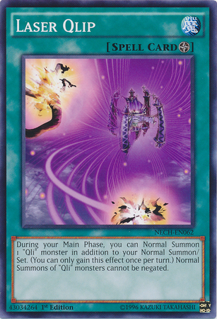 During your Main Phase, you can Normal Summon 1 "Qli" monster in addition to your Normal Summon/Set. (You can only gain this effect once per turn.) Normal Summons of "Qli" monsters cannot be negated.