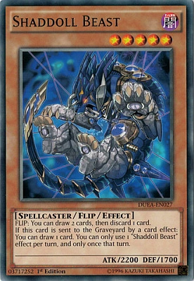 If this card is sent to the Graveyard by a card effect: You can draw 1 card. You can only use 1 "Shaddoll Beast" effect per turn, and only once that turn.