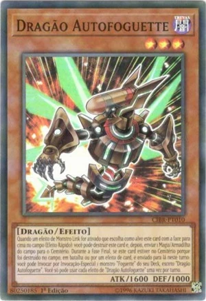 Quando um efeito de Monstro Link for ativado que escolha como alvo este card com a face para cima no campo (Efeito Rápido): você pode destruir este card e, depois, enviar 1 Magia/Armadilha do campo para o Cemitério. Durante a Fase Final, se este card estiver no Cemitério porque foi destruído no campo, em batalha ou por um efeito de card e enviado para lá neste turno: você pode Invocar por Invocação-Especial 1 monstro "Foguette" do seu Deck, exceto "Dragão Autofoguette". Você só pode usar cada efeito de "Dragão Autofoguette" uma vez por turno.
