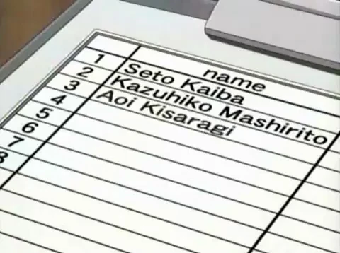 His name appeared on a list of names of people at KaibaCorp. Each name disappeared after Trueman sent them to the World of Darkness. Aoi was the second last to disappear from the list, leaving only Kazuhiko Mashirito and Seto Kaiba.