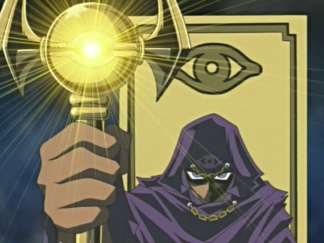 Marik Ishtar shadowed by the light of his Millennium Rod