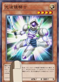 | Japanese | 光波鏡騎士 | ①:自分・・・光波」モンスターが戦闘で破壊された場合、そのモン・・・とし、手札のこのカードと自分フィールドのカード1・・・発動できる。自分の墓地から対象のモンスターを特殊・・・ |
