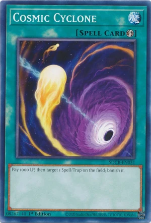 Payez 1000 LP, puis ciblez 1 Magie/Piège sur le Terrain ; bannissez-le. |