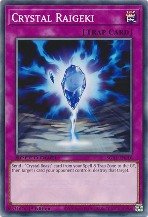 Lege 1 „Kristallungeheuer“-Karte von deiner Zauber- & Fallenzone auf den Friedhof und wähle dann 1 Karte, die dein Gegner kontrolliert; zerstöre das gewählte Ziel. |