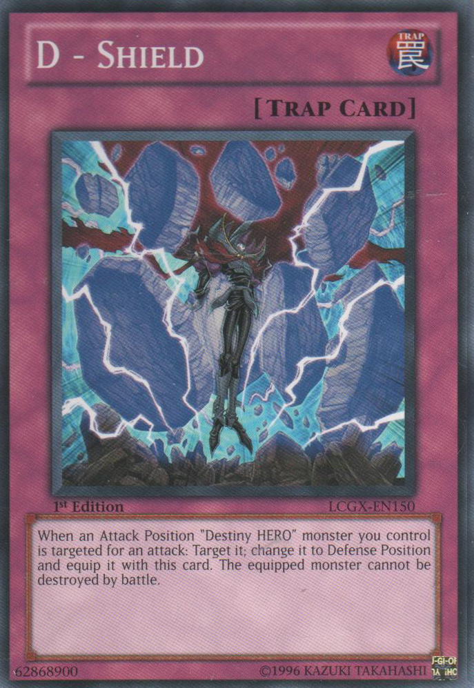 Ative somente quando um monstro "Destiny Hero" em modo de ataque, que voce controla é selecionado como alvo de ataque. Mude o monstro para modo de defesa e equipe esta carta no monstro(ela é tratada como carta de equipamento). O monstro equipado não pode ser destruído em batalha.