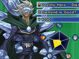 Destiny Hero - Diamond Dude, known as Destiny Hero Diamond Guy in the Japanese version, is a character version of the card, "Destiny Hero - Diamond Dude". He appears in the video game Yu-Gi-Oh! 5D's World Championship 2009: Stardust Accelerator.