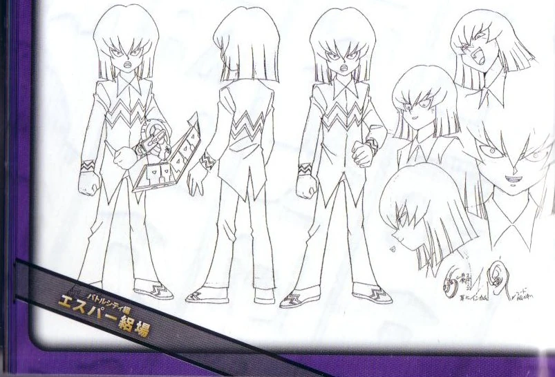Espa made his first appearance in a brief non speaking role in the town square, when Mai Valentine was pointing out the Battle City participants to Yugi Muto and Téa Gardner and what their deck and strategies were. She said he dueled using psychic powers.