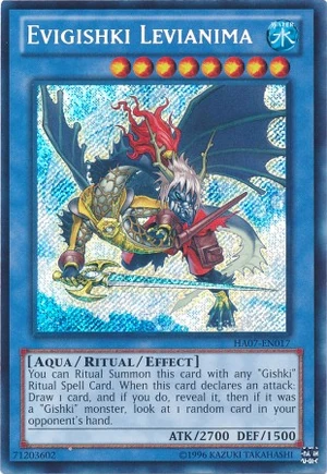 Vous pouvez Invoquer Rituellement cette carte avec une Carte Magie Rituelle "Gishki". Lorsque cette carte déclare une attaque : piochez 1 carte, et si vous le faites, révélez-la, puis si la carte révélée était un monstre "Gishki", regardez 1 carte au hasard dans la main de votre adversaire.