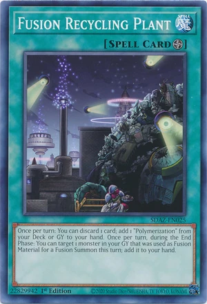 Une fois par tour : vous pouvez défausser 1 carte ; ajoutez 1 "Polymérisation" depuis votre Deck ou Cimetière à votre main. Une fois par tour, durant la End Phase : vous pouvez cibler 1 monstre dans votre Cimetière qui a été utilisé comme Matériel Fusion pour une Invocation Fusion ce tour ; ajoutez-le à votre main. |