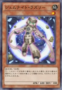 | Japanese | ジェムナイト・ラズリー | ①:このカードが効果で墓地へ送られた場合、自分の墓地の通常モンスター1体を対象として発動できる。そのモンスターを手札に加える。 |