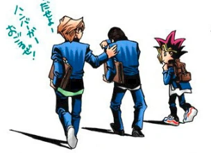 Honda and Jonouchi used to bully Yugi at school. Together they took the unsolved Millennium Puzzle from Yugi and teased him about it. However Anzu Mazaki arrived and told them off, causing the two boys to flee. While talking about what happened in the hall, Honda and Jonouchi met the hall monitor, Ushio, who overheard them mentioning bullying. Jonouchi tried telling Ushio to stay out of it, but knowing how influential Ushio was, Honda restrained Jonouchi and said nothing important about bullying. The next day Ushio beat-up Jonouchi and Honda, accusing them of bullying Yugi. However Yugi tried defending them when he found out, which resulted in him being beaten-up too.[3]