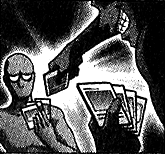 During the previous Shadow Game, Dark Yugi faced an illusion of Jonouchi created by Shadi. They were to play the Game of Death, where each player was to try and force their opponent to walk over the edge and fall to their death. The illusion displayed the traits Jonouchi had when he was bully. Dark Yugi refused to take his turns, as it was possible he was facing the real Jonouchi, possessed by Shadi. Dark Yugi's trust in Jonouchi, caused the illusion to disappear, rather than force him off the edge.[22]