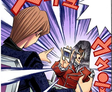 By reading Kaiba's mind, Pegasus knew when he was about to Summon "Blue-Eyes White Dragon" and used the card "Prophecy" to easily take the card from him.[24] Pegasus also foresaw Kaiba's "Saggi the Dark Clown" and "Crush Card" combo and used "Negative Energy" to make "Saggi" too strong to hold the virus, killing the virus. Pegasus then used "Toon World" to turn his monsters, including the "Blue-Eyes White Dragon" he took, into cartoon versions of themselves, capable of dodging attacks. To avoid having his mind read, Kaiba discarded his hand and played cards straight from the top of his Deck, which did not make any major difference, as Pegasus had read Kaiba's subconscious memorization of his own Deck to produce counter-strategies for any possible incoming threats.[5] Kaiba managed to defeat the cartoon version of "Blue-Eyes White Dragon" with a combination of "Shadow Spell" and another "Blue-Eyes White Dragon". However, Pegasus captured the new "Blue-Eyes White Dragon" in "Dragon Capture Jar". Kaiba tried to attack "Dragon Piper" to stop it Summoning "Blue-Eyes White Dragon" from the jar, but Pegasus used "Doppelganger" to copy Kaiba's "Crush Card", infecting "Dragon Piper". Once the piper was destroyed, Kaiba's Deck was infected, killing everything with more than 1500 ATK. Now only able to revive "Saggi the Dark Clown", Kaiba was easily finished off.[29] Pegasus then inflicted the "Mind Card" Penalty Game on Kaiba, trapping his soul in another "Soul Prison" card.[18]
