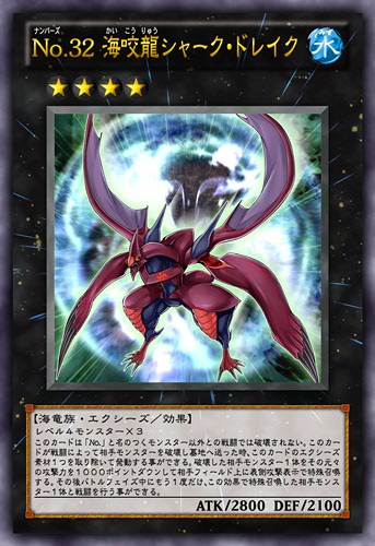| Japanese | No.32 海咬龍シャーク・ドレイク | レベル4モンスター×3 |