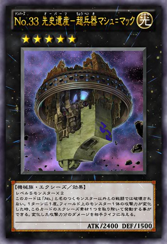 | Japanese | No.33 先史遺産-超兵器マシュ=マック | レベル5モンスター×2 |