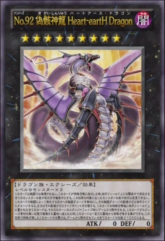 | Japanese | No.92 偽骸神龍 Heart-eartH Dragon | レベル9モンスター×3 |