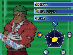 Orcus uses a Life Points recovery Deck, titled "Life Liquid". The majority of his monsters allow him to gain Life Points each turn. Most of his other cards revolve around stalling his opponent. "Gravekeeper's Servant " can be used in conjunction with "Macro Cosmos " to prevent his opponent attacking .