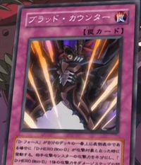 | Japanese | ブラッド・カウンター | 「D-フォース」が自分のデッキの一番上に表側表示である場合に「D-HERO Bloo-D」が攻撃対象となった時に発動可能。相手攻撃モンスターの攻撃力を半分にし、「D-HERO Bloo-D」1体の攻撃力をダメージステップの間[。。。] |
