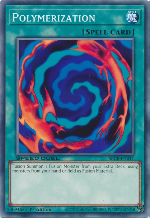 Beschwöre 1 Fusionsmonster als Fusionsbeschwörung von deinem Extra Deck und verwende dafür Monster von deiner Hand oder Spielfeldseite als Fusionsmaterial.
