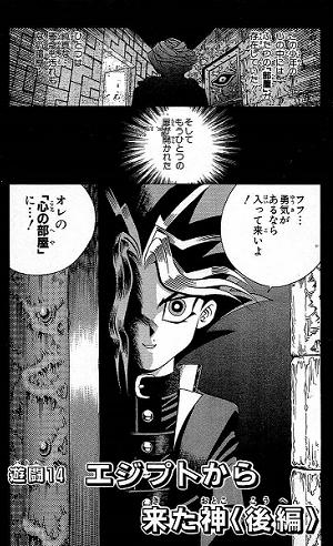| Shadi prepares to kill Professor Yoshimori for defiling the territory of the Gods. After entering his soul room, Shadi finds Yoshimori is waiting for Yugi to visit, so he decides to postpone killing Yoshimori and use him to lure Dark Yugi into a Shadow Game. | |||
