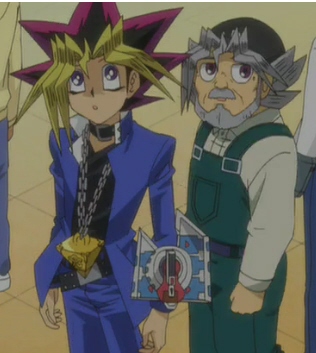 - Prior to him settling down in his game store, Grandpa was a world class gambler and sported a hairstyle similar to Yugi's (although with a fedora). After acing every game of chance he ever competed in, he made a bet with himself. If he should ever lose a game, he'd retire, open a store and wear overalls for the rest of his life. That said, it would appear he eventually lost a game.