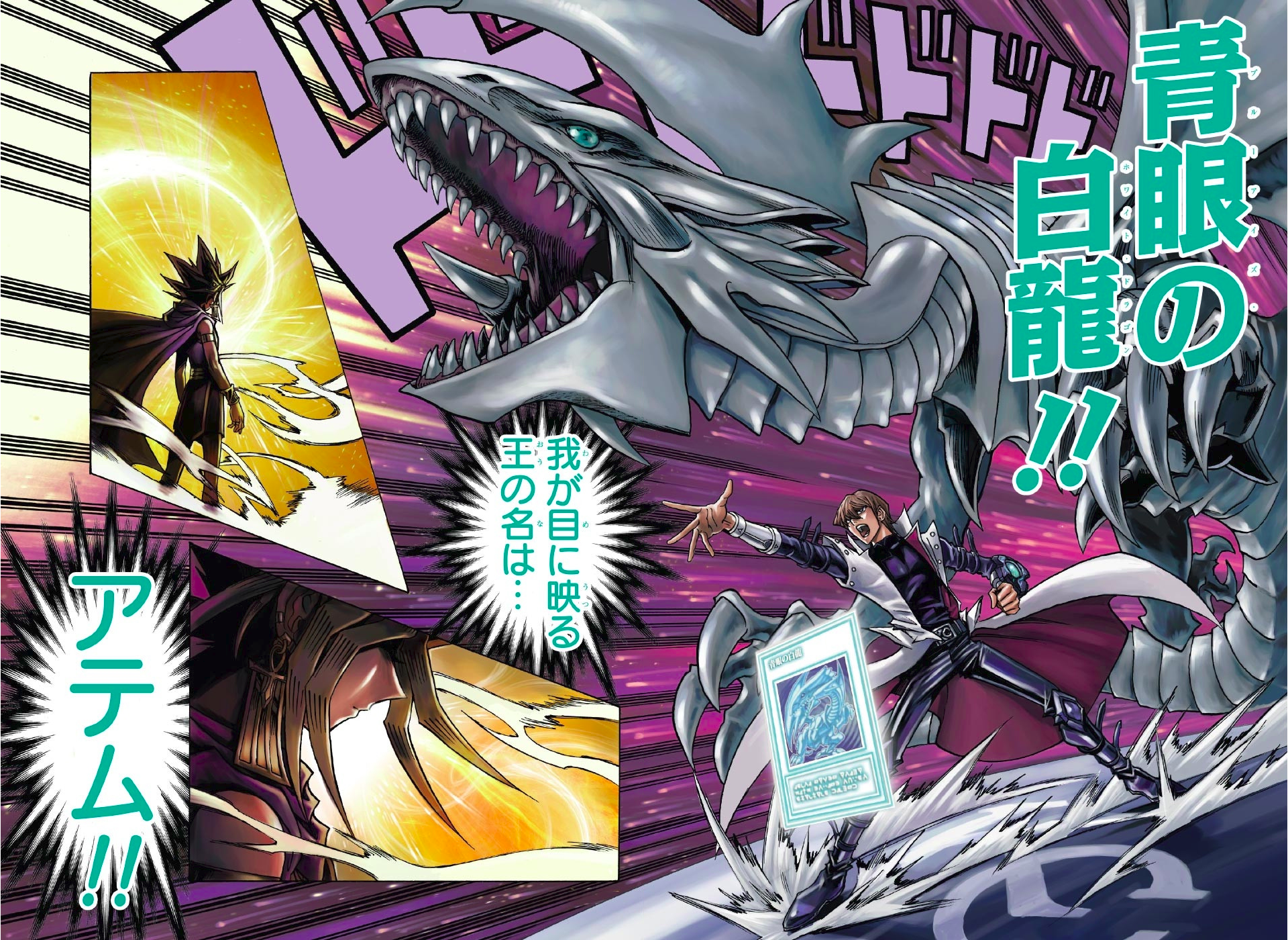Kaiba, Summoning "Blue-Eyes White Dragon", while he sees Atem