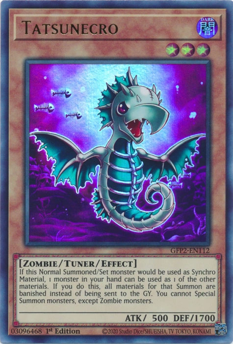 Falls dieses als Normalbeschwörung beschworene/gesetzte Monster als Synchromaterial verwendet würde, kann 1 Monster in deiner Hand als 1 des anderen Materials verwendet werden. Falls du dies tust, wird alles Material für die Beschwörung verbannt, anstatt auf den Friedhof gelegt zu werden. Du kannst keine Monster als Spezialbeschwörung beschwören, außer Zombie-Monstern. |
