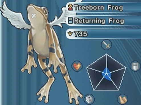 Treeborn Frog is a character version of the card "Treeborn Frog". It appears briefly in one of the Duel Monsters Spirit World dimensions, attacking a group of Garuda the Wind Spirits that had been harassing weaker monsters.[1]